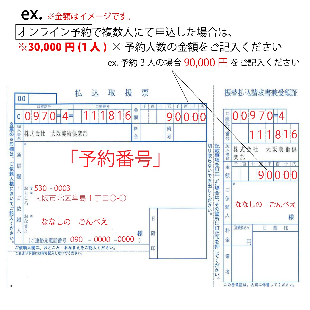 郵便局の「振込取扱票」に下記《記入例》を参考としてお振込みください。